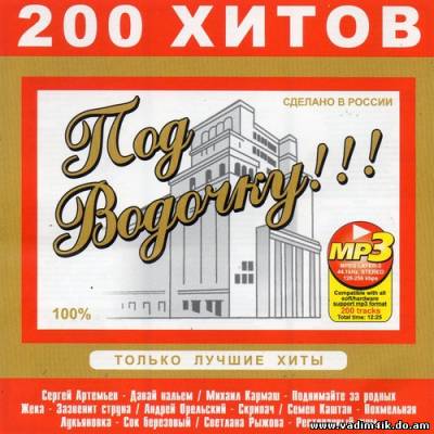 | Категория: Сборник Вокалист: VA Название сборника: 200 Хитов Под Водочку (2012) Стиль музыки: Шансон Год релиза: 2012 Треки: 200 Качество|Аудио: mp3 | 128 kbps Время звучания: 11:52:20 Размер архива: 671 MB Трэклист: 001. Сергей Артемьев - Давай нальем 002. Михаил Кармаш - Поднимайте за родных 003. Жека - Зазвенит струна 004. Андрей Орельский - Скрипач 005. Семен Каштан - Похмельная 006. Лукьяновка - Сок березовый 007. Светлана Рыжова - Ресторанный шум 008. Григорий Заречный - Танцуй, любимая 009. Виктор Королев - Я брошу жизнь свою к твоим ногам 010. Михаил Бублик - Потанцуем 011. Наталья Крикун - Красное вино 012. Валерий Курас - У мужика 013. Сергей Елабуга - Банька 014. Анатолий Полотно и Федя Карманов - Рыбацкие байки 015. Андрей Рубежов - Когда вино в бокале кончится 016. Евгений Добров - Моя гитара 017. Слава Корецкий - Кабанчик жареный 018. Андрей Федосеев - Ресторан 019. Игорь Кабаргин - Пей до дна! 020. Виктор Калина - Пей пиво! 021. Елена Ваенга - Номерок 022. Валерий Курас - Покуролесили 023. Наталья Крикун - Я не девочка-пай 024. Константин Бубнов - Захотелось водки вдруг... 025. Михаил Шуфутинский - Наливай, поговорим 026. Валерий Растрига - Пиво 027. Мафик - Слово Пацана 028. Владимир Хозяенко - Эх, Баня 029. Александр Кальянов - Загуляю 030. Демьян Закускин - Окорочка да водочка 031. Валерий Курас - Давайте выпьем за здоровый образ жизни 032. Александр Дюмин - Пили водочку 033. Сергей Любавин - Пиво 034. Ян Войков - Гуляй, душа 035. Андрей Калинин - Рестораны 036. Положительный заряд - Банька 037. Андрей Калинин - Номера 038. Вячеслав Тимофеев - Костерок 039. Елена Ваенга - Виски 040. Макс Азаркин - Гуляй душа 041. Лукьяновка - Калина красная 042. Владимир Бочаров - Хватит пить 043. Мартын Ажуров - Русская баня 044. Григорий Лепс и Александр Розенбаум - Четвертиночка 045. БумеR - Корабли 046. Попутчик - Страна стакания 047. Сергей Врачев - Принеси, официант 048. Владимир Волжский - Вованчик 049. Владимир Шишов - Штопор 050. Михаил Шуфутинский - Левый берег Дона 051. Александр Антимиров - Счастье 052. Господа хорошие - Поговорим, мой друг 053. Александр Кирсс - За Вас, родители! 054. Виталий Волк - Русская Душа 055. Игорь Кабаргин - Дым от сигарет 056. Владимир Хозяенко - Она мне нравится 057. Илья Кузнецкий - Извини, закурю... 058. Саша Ролик - Гуляка 059. Влад Павлецов - Кабачок уютный 060. Эдуард Шенфельд - Водка с перцем 061. Денис Майданов - Будем жить, старина! 062. Лиман - С Днем рождения Братуха 063. Виталь - Раз, два - рюмочка 064. Боба Грек - Дружок 065. Анатолий Корж - Пили водочку 066. Штар - Гуляем 067. Александр Блик - Соточка 068. Евгений Росс и Евгений Кемеровский - Заплутали мишки, заплутали 069. Александр Данцевич - Сонечка 070. Сергей Ноябрьский - Загуляем до утра 071. Игорь Муравьев - Мужики 072. Андрей Ламма - Страна Наливаево 073. Игорь Сахалин - Свадьба 074. Виталий Зеленый - Водочка 075. Михаил Лиманский - За рюмкой водки 076. Виктор Копейкин - Холостяк 077. Роман Козырев - Я иду в кабак 078. Валерий Палаускас - Погадай цыганка мне 079. Есаул - Доля казака 080. Александр Доля - Налей дружок 081. Слава Корецкий - Остограмился 082. Беломорканал - Налей по сто 083. Илья Кузнецкий - Корешок, давай на посошок! 084. Вячеслав Мухин - Гармошечка и водочка 085. Михаил Поляков - Гуляй народ 086. Александр Новиков - Про водку 087. Игорь Кабаргин - Пей до дна 088. Пятилетка - Попей, красавица 089. Любовь Шепилова - Загуляю я сегодня 090. Геннадий Тимофеев - Полведра 091. Виктор Давидзон - Самогоночка 092. Александр Черкасов - Застольная 093. Владимир Черняков - Загуляю 094. Евге