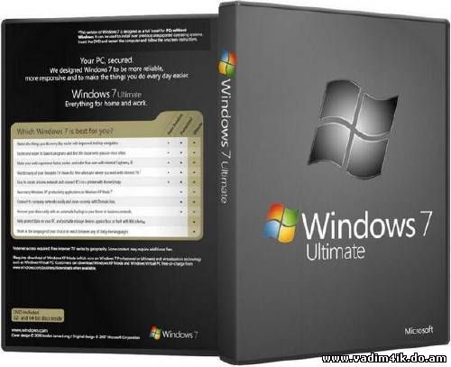Новая сборка, которая облегчает установку на компьютеры, тем-что имеется выбор разрядности устанавливаемой системы. В сборке, в одном образе представлены 32 и 64 разрядные ОС Windows 7 Ultimate. За основу соответственно взяты подлинные образы. В обоих системах установлены нужные и рекомендуемые и значимые обновления по 23 декабря включительно! Системы подготовлены и настроены к применению. Применён патч для сторонних тем,твики ПКМ,ОЕМ. Добавлено немножко тем и обоев рабочего стола.Сборки обновляются и проходят проверку на подлинность!!!"