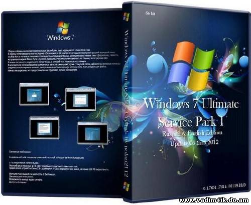 Сборка собрана на основе подлинной английской редакции от 16 мая 2011 года. В сборку интегрированы все последние обновления по 26 декабря 2011 года, интегрирован русский языковый пакет(выбор имеется в начале установки),оставлена одна редакция Ultimate, интегрированы новые темы оформления, максимально изменены все источники, чтобы соответствовать выбранному жанру оформления, гаджеты, поправлена ширина Меню Пуск в русской редакции, Максимальная изменено на Ultimate, интегрирован IE9.В корне системного раздела имеется папка Tweak, в которой имеется пригодные программки."