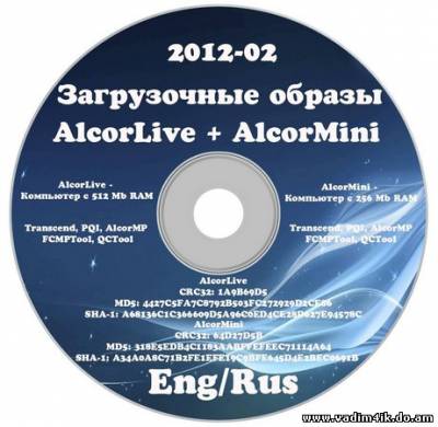 AlcorLive - 2012-02 загрузочный мультимедийный образ (256Мб) AlcorLive c утилитами Transcend, PQI, AlcorMP, FCMPTool, QCTool для восстановления флешек и документацией по контроллерам UFD\CardReader ALCOR. AlcorMini - 2012-02 загрузочный образ (155Мб) AlcorMini c утилитами Transcend, PQI, AlcorMP, FCMPTool, QCTool для восстановления флешек и документацией по контроллерам UFD\CardReader ALCOR."