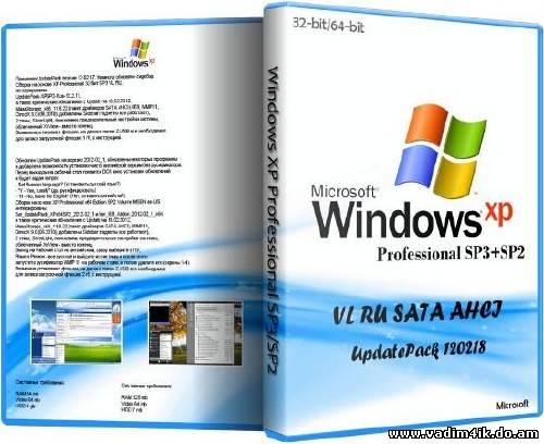 Сборки на основе XP Professional 32 бит SP3 VL RU и XP Professional x64 Edition SP2 Volume MSDN en-US, с встроенным UpdatePack-XPSP3-Rus-12.2.17, а также последнии обновления с Update на 18.02.2012."