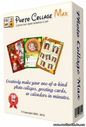 Photo Collage Max – программа, которая создает фотоколлажи. Так же создает альбомы, календари и т. п. Содержит в себе множество шаблонов, фигур, масок, фоторамок. С помощью Photo Collage Max вы сможете быстро и легко создать веселый коллаж. Программа предлагает простой способ создания коллажей, открыток, альбомов для вырезок, календарей, на день рождения, свадьбу, юбилей, праздники и любой другой особый момент в жизни. Поставляется с широким набором шаблонов, фонов, рамок и т. д."