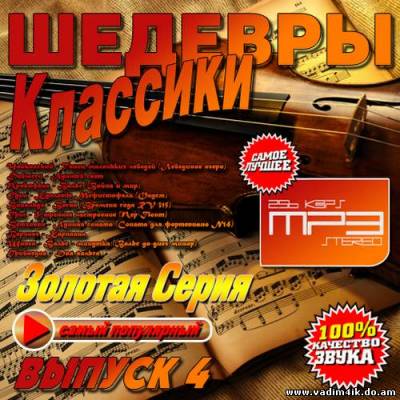 Категория: Сборник Исполнитель: VA Альбом: Золотая серия. Шедевры классики #4 (2013) Жанр,стиль: Классическая Дата выпуска: 2013 Трэки: 100 Формат|Качество: mp3 | 265 kbps Время звучания: н/д Размер архива: 707 MB"