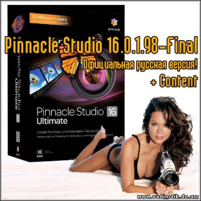 [/][/center] Все редакции Pinnacle Studio 16 поддерживают публикацию роликов одной кнопкой в социальных сетях, а также на видеоприставках. Среди прочих новинок стоит упомянуть полноценное оформление готовых дисков DVD, библиотеку музыкального сопровождения Scorefitter, набор медиаресурсов, редактор переходов и редактор обрезки эпизодов. Кроме того, в комплект поставки входит более 1500 эффектов, переходов, титров и монтажных заготовок в режимах 2D и 3D."