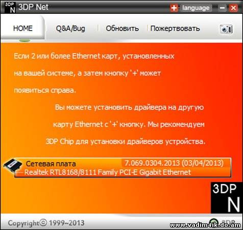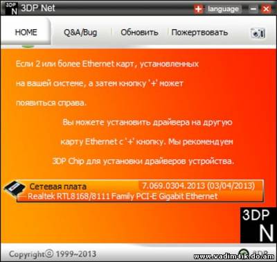 | 3DP Net - программа автоматически определяет установленную сетевую карту и подбирает самый новый подходящий драйвер. Поддерживает режим без подключения к сети. В случае если у вас на все сетевые карты компьютера установлены драйвера, и работают, получите оповещение, что с компьютером все ОК и вмешательства утилиты не требуется. Прекрасно работает в 32-х и 64-х битных версиях операционных систем. Хотя современные операционные системы автоматически находит практически все оборудование и устанавливает нужные драйвера, но как всегда есть исключения, по закону подлости, обычно проблемы возникают с сетевыми картами. Получается замкнутый круг, чтоб скачать нужный драйвер нужно подключение к интернету, а для получения к интернету нужна работающая сетевая карта. Некоторые скажут, а как же CD диски которые идут к компьютеру. У большинства пользователей их нет, или производители имеют склонность, напихать драйвера для всех чипов которые используют (чтоб было наверняка), тогда можно потратить много времени ставя все поочередно, пока методом тыка не найдем нужный драйвер. В общем если сетевая карта автоматически не устанавливаться, можно интересно и познавательно провести время, проявляя невероятную хитрость и изворотливость, чтоб найти нужные драйвера. Всех этих проблем можно избежать, если использовать утилиту 3DP Net которая в одно нажатия кнопки мыши поможет установить драйвера на сетевые карты, в том числе и беспроводные. Во время скачивания программы удивляет её размер в 75 мегабайт, секрет открывается просто, сюда упаковали драйвера сетевых карт, которые можно встретить у пользователей, под все актуальные версии операционных систем. Запустив полученный файл в начале будет распакованы файлы (как из архива), только потом будет запущена программа. Главное не забудьте в какую папку были распакованы файлы, чтоб удалить после того как 3DP Net больше не понадобиться. ОС: Windows® XP, 2003, Vista, 7, 8 (32/64-бит) Интерфейс: Русский, Multilanguage Лекарство: Не требуется Размер: 72.37 Mb | |