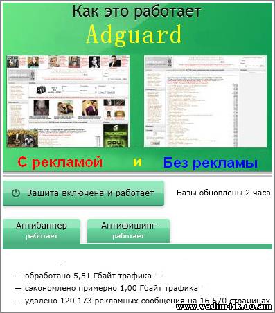 ![]() Adguard 5.6 — последняя версия популярного интернет-фильтра для борьбы c рекламой и вредоносными сайтами. Adguard работает со всеми популярными браузерами, задействуя минимум ресурсов. При использовании Adguard, рекламные изображения и ролики блокируются до того, как они оказываются загружены на компьютер. Такой подход позволяет сэкономить трафик и ускорить загрузку страниц при медленном соединении. В новой версии в программе был полностью переделан Помощник Adguard и интегрирован сервис Web Of Trust для проверки безопасности веб-сайтов. Благодаря разделению процессов в программе, пользователи теперь могут отключать графический интерфейс программы, и для фильтрации будет использоваться всего лишь 30-40 Мб оперативной памяти. Особенности программы: 1. Работает со всеми популярными браузерами; 2. Разработана для блокировки рекламы, характерной для рунета; 3. Проста в использовании, незаметно блокирует рекламу в фоновом режиме; 4. Имеет браузерный модуль для блокировки рекламы вручную; 5. Работает «из коробки», не требуя никаких дополнительных настроек; 6. Незаменима при использовании 3G модема, т.к. значительно ускоряет загрузку страниц и экономит трафик; Описание версии 5.6: Добавлено: + Совершенно новый помощник Adguard + Автоматическое обновление + Adguard разделен на windows-службу и графического клиента + Интеграция с Web Of Trust – теперь вы будете знать о репутации посещаемых сайтов + Улучшенный антифишинговый модуль + Новый модуль фильтрации для приложений Windows 8 Modern UI Исправлено: - Проблема при добавлении правил для кириллических доменов из помощника - Потеря иконки Яндекс.Браузера в настройках - Проблемы с отображением некоторых сайтов ВНИМАНИЕ – эксклюзив!!! В архиве с программой идут официальные ключи любезно предоставленные разработчиками программы. Эти ключи не будут блокироваться. Наиболее расторопные из Вас смогут воспользоваться ими. Тем же кто не успел, не стоит расстраиваться. Можете подождать следующей моей раздачи, а можете и не ждать, ведь программа имеет 15 дневный пробный период, за который Вы сможете решить для себя - стоит ли потратить 149 рублей чтоб полностью забыть о рекламе?! Цена лицензии на программу устанавливалась исходя из российских реалий и во много раз меньше своих аналогов типа AD Muncher и всех остальных. Год выхода: 2013 Версия: 5.6 Платформа: Windows All Язык Интерфейса: Русский Таблетка: Имеется Размер файла: 13.09 Mb | |