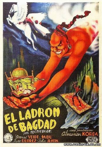 | Волшебные приключения по мотивам «1001 ночи». Злой колдун визирь Джафар свергает с престола Ахмада, внука халифа Гаруна аль-Рашида . В тюрьме, в ожидании казни, Ахмад встречает мальчика-воришку Абу, который организует их побег. Друзья направляются в Басру, где Ахмад завоёвывает любовь принцессы. Но Джафар настигает Ахмада. После множества невероятных приключений Ахмад и Абу побеждают колдуна. Информация о фильме Название: «Багдадский вор» Оригинальное название: «The Thief of Bagdad» Год выпуска: 1940 Жанр: Приключения, Фэнтези Режиссеры: Людвиг Бергер, Майкл Пауэлл, Тим Уэлан В главных ролях: Конрад Фейдт, Сабу, Джон Джастин, Джун Дюпре, Рекс Ингрэм, Майлз Моллесон, Мортон Селтен. Выпущено: Великобритания Продолжительность: 01:20:31 Озвучивание: многоголосый закадровый перевод + английский звук Награды Оскар, 1941 год Победитель: лучшая работа оператора (цветные фильмы), лучшая работа художника (цветные фильмы), лучшие спецэффекты; Номинация: лучший оригинальный саундтрек Файл Формат: AVI 1.0 (VFW 1.1) Качество: DVDRip Видео: 576x432 (1.33:1), 25 fps, DivX Codec 5.05, ~1011 kbps avg, 0.16 bit/pixel Аудио: 48 kHz, AC3 Dolby Digital, 2/0 (L,R) ch, ~192.00 kbps avg Размер: 698.70 Mb Скачать Багдадский вор / The Thief of Bagdad (1940/DVDRip/725 Mb) | |