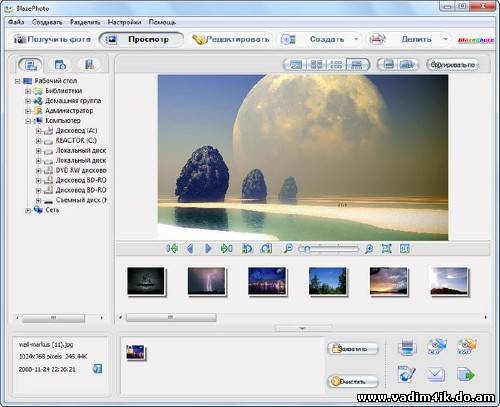 | BlazePhoto - мощная и полноценная программа для цифровых фотографии, объединяющая в себя импортирование фотографии, предварительный просмотр, организации фотографий по определенным категориям, редактирование. Позволяет гибко классифицировать, рассматривать и редактировать изображение. Есть также многократные настройки по редактированию фото, дополнительные функции которые представлены в программе печатать, отправка по электронной почте, запись на компакт-диск, создание DVD демонстрации слайдов и создание фото альбома в html формате. Информация о программе: Релиз выпущен: 2013 Платформа: Windows® 8/XP/Vista/7 Язык интерфейса: русский Лекарство: Присутствует Размер файла: 32,72 МБ | |