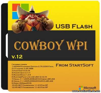 Название: COWBOY WPI 12 USB Flash From StartSoft Год выпуска: 2013 Версия: 12 Разработчик: StartSoft Платформа: 32bit+64bit Язык: Русский Ключ: Не требуется Размер файла: 13 Gb