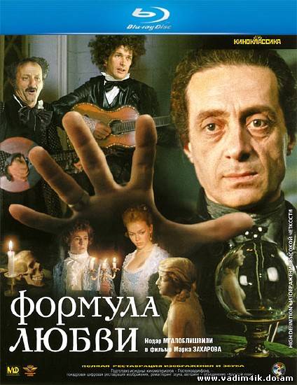 | Музыкальная комедия по мотивам повести Алексея Толстого «Граф Калиостро». В 1780 году Джузеппе Калиостро прибыл в Россию для представления высшей знати. Умыкнув под предлогом лечения отца юную Марью Ивановну, граф пытается влюбить в себя девицу, но безуспешно. В провинциальном поместье, где волею случая оказались путешественники, живет юноша, влюбленный в мраморную статую. С помощью Калиостро он надеется оживить мрамор, но встреча с живой Машей все меняет… Информация о фильме: Название: Формула любви Оригинальное название: Формула любви Год выхода: 1984 Жанр: мелодрама, комедия Режиссер: Марк Захаров В ролях: Нодар Мгалоблишвили, Александр Абдулов, Семен Фарада, Елена Валюшкина, Александр Михайлов, Александра Захарова, Елена Аминова, Татьяна Пельтцер, Леонид Броневой, Николай Скоробогатов Знаете ли вы, что... - Во время съёмок Нодар Мгалоблишвили сломал ногу, но замену актёру искать не стали, и он продолжил сниматься, хотя его нога была в гипсе. - Каменная фигура, о которой грезил один из героев фильма, «засветилась» в двух других советских комедиях. В «Старом новом годе» её в бане лицезреют герои Калягина и Невинного, а также внимательный зритель её заметит на первом этаже офиса в «Служебном романе». - Сюжетная линия перемежается оригинальными танцевальными зарисовками. Танцоры выступают в красно-чёрных «карнавально-итальянских» (мужская часть) и русских народных (женская часть) костюмах. Состав группы: Н. Куломзина, Е. Афанасьева, И. Кривиченкова, С. Савельев, И. Бехтемиров, А. Живлюк, К. Гераскин, Б. Марьямов, М. Кудрявцев. Солист — Александр Куломзин. Выпущено: СССР Продолжительность: 01:30:11 Перевод: Оригинал Kinopoisk рейтинг: 8.137 (12 412 голосов) Файл: Формат: AVI Качество: HDRip (Исходник Blu-Ray 1080p) Видео: XviD, 1847 Кбит/с, 704x512 Звук: AC3, 6 ch, 448 Кбит/с Размер: 1,45 Gb Файл: Формат: MKV Качество: BDRip Видео: 986x720 at 23.976 fps, x264@L4.1, 2pass, ~5429 kbps avg Звук: Russian: 48 kHz, DTS, 3/2 (L,C,R,l,r) + LFE ch, ~1536.00 kbps avg Размер: 4,37 Gb Скачать Формула любви (1984/BDRip/HDRip/1400MB) HDRip Скачать с vip-file.com Одним файлом Скачать с letitbit.net Одним файлом Скачать с shareflare.net Одним файлом Скачать с unibytes.com Одним файлом BDRip Скачать с vip-file.com Одним файлом Скачать с letitbit.net Одним файлом Скачать с shareflare.net Одним файлом Скачать с unibytes.com Одним файлом | |