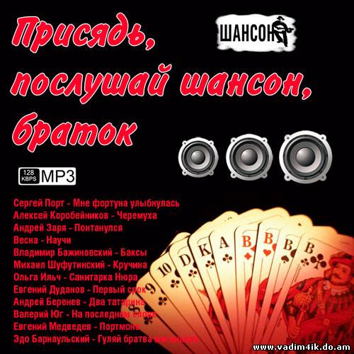 | Категория: Сборник Вокалист: VA Название диска: Присядь, послушай шансон, браток (2013) Стиль: Шансон Год релиза: 2013 Кол-во трэков: 200 Качество|Аудио: mp3 | 128 kbps Время звучания: 12:26:11 Размер архива: 652 MB Трэклист: 001 Сергей Порт - Мне фортуна улыбнулась 002 Алексей Коробейников - Черемуха 003 Андрей Заря - Понтанулся 004 Весна - Научи 005 Владимир Бажиновский - Баксы 006 Михаил Шуфутинский - Кручина 007 Ольга Ильч - Санитарка Нюра 008 Евгений Дуданов - Первый срок 009 Андрей Беренев - Два татарина 010 Валерий Юг - На последнем слове 011 Евгений Медведев - Портмоне 012 Эдо Барнаульский - Гуляй братва жиганская 013 Саша Курский - В ресторане 014 Светлана Голко - Ой, девочки! 015 Валерий Войт и Первомайка - Попутным экипажем 016 Воровайки - Жиган-лимон 017 Геннадий Жуков - Здравствуй, мой Ростов 018 Таганка - Жизнь босяцкая 019 Перепелица - Где молодой рассветы я встречал 020 Евгений Дуданов - Столыпинский вагон 021 ВИА Северо-Запад - Пацаны 022 Лесоповал - Товарищ мент 023 Алексей Свешников - Здрасьте 024 Александр Заборский - Пиковая краля 025 Сергей Пестов - Жиганской походкой 026 Сергей Стороженко и Люсьен - Меня ищут менты 027 Александр Заборский - Свист и пляска 028 Владислав Медяник - Масленица 029 Аркадий Беловский - В поисках удачи 030 Таганка - Воровка 031 Маруся - Хочу замуж 032 Толя Цыган - Белые туфельки 033 Алексей Созонов - Ой, туман, туманище! 034 Юрий Уральский - Опа, опа 035 Валерий Войт и Первомайка - Про брата 036 Евгений Медведев - Брюс Уиллис 037 Дима Казанский - Катюша 038 Сергей Урал - Холостяк 039 Александр Вестов - Арестантская молитва 040 Михаил Поляков - Скрипнула калитка 041 Сергей Куприк - Босяцкая жизнь 042 Гиви Миляков - Фонарики 043 Сергей Стороженко и Люсьен - Венчаны на небесах 044 Александр Раю - Алла-Алочка 045 Михаил Поляков - Сочи 046 Николай Искуснов - Щипачи 047 Александр Забазный - Что такое шансон 048 Олег Гаврилюк - Девочка 049 Сборная Союза - Когда 050 Сергей Стороженко и Люсьен - Конфеточка 051 Александр Валуйский - Сочи 052 Валерий Юг - От добра, добра не ищут 053 Дмитрий Суслов - Ворона и водка 054 Провинция-Ч - Бес в ребро, брат 055 Андрей Заря - Ловлю момент 056 Барон - Светка 057 Евгений Воровский - Так получилось 058 Игорь Левин и группа Шандала - Верный путь 059 Аркадий Беловский - Короткая история 060 Валерий Козьмин - Солнечный удар 061 Анатолий Кенсаринов - Фуфло 062 Катерина Голицына - Замуж за гаишника 063 Толя Дым - Маруся 064 Олег Голубев - А ты одна 065 Юрий Уральский - Куплеты 2 066 Светлана Астахова - Беспорядок 067 Андрей Данцев - Дядя Вова 068 Тимур Шаов - Ай Пи, Ай Ти, Три Джи 069 Тимур Шаов - Блондинки и брюнетки 070 Михаил Поляков - Присядь, браток 071 Рома Левобережный - Сыграй-ка мне, дружище, на гитаре 072 Рома Левобережный - Ростов-кабацкий 073 Анатолий Таволжанский - Идет игра 074 Ольга Ильч - Воровское счастье 075 Виталий Волк - Где, ты воля 076 Виктор Калина - Шарик крутится 077 Владимир Федоров - Бурлаки 078 Аркадий Беловский - Южный городок 079 Сергей Стос - От срока до срока 080 Денис Мафик - Привет 081 Андрей Орельский - Простой народ 082 Михаил Блат - Лесоповал 083 Олег Федотов - Мне жить так нравится 084 Аюк - Фуфло 085 Андрей Горшков и группа Острог - Выхожу 086 Геннадий Либгардов - Этап-конвой 087 Игорь Сахалин - Воровской тост 088 Сергей Паровой - Кризис 089 Рома Левобережный - Приключения в славном городе Сочи 090 Сборная Союза - Малолетка 091 Провинция-Ч - Годы летят 092 Дмитрий Фомин - Одесская 093 Олег Безъязыков - Что же ты Мишаня 094 Юрий Уральский - Шахматы 095 Серг