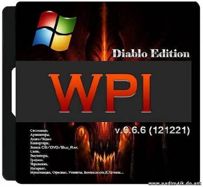 | Сборка из больше всего ранее не известных версий программ, как бесплатных, так и платных с полу- и полнейшей автоустановкой. Содержит в себя программы следущих подразделов: Системные, Архиваторы, Аудио/Видео Конвертеры, Запись CD/DVD/Blu_Ray, Связь, Эмуляторы, Графика, Украшения, Интернет, Мультимедиа, Офисные, Утилиты, Безопасность, ICQ-чаты... Список программ Системные требования: CPU: Intel Pintium 4/AMD Athlon 64 с частотой 2 GHz или лучше ОЗУ: 512mb RAM или больше HDD: минимум 6 гб места на диске Доп. оборудование: клавиатура, мышь Дополнительно: +Совместимость с DirectX 9 +Видео карта VGA 800x600 Контрольные суммы CRC32: A24369BA MD5: B70EDDBF4E4344475C52B78593311624 SHA-1: 6594F4D88880D691B04E95B795CEA53DA2E19BC2 Название: WPI Diablo Edition by IceSlam|Trine|Sofanik Версия: v.6.6.6 (121221) Язык: Русский Автор WPI: IceSlam|Trine|Sofanik Лекарство: в комплекте Размер файла: 4.23 GB Скачать WPI Diablo Edition 6.6.6 (121221) | |